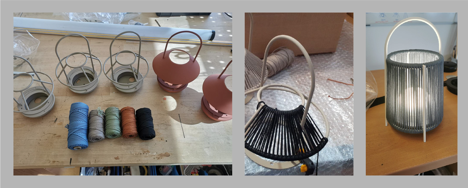 La parte superior de Candela está rematada con un asa facilitando su transporte y adaptación a diferentes soportes.