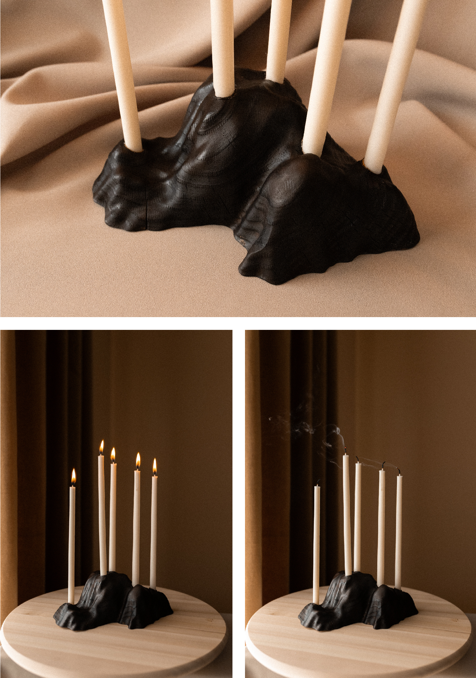 Mendi is not just a candlestick, but a fragment of the interior landscape, an object that brings the memory of the earth to the center of the table.