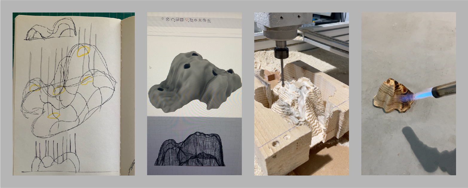 Inspirado en los pliegues, surcos y formas orgánicas de la montaña, este candelabro evoca la geografía como un acto escultórico. Cada linea y curva responde a la contemplación de los relieves naturales, reinterpretadnos en madera maciza trabajada de forma completamente artesanal.